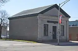 Acker and Evans Law Office (also known as Ogdensburg Bank) is a historic office building in Ogdensburg, New York, United States. It is a rectangular Greek Revival style structure with a facade of smooth-faced, locally quarried white marble. It was built about 1830 as a bank, then used as a ticket agency, insurance office, express office, and finally as a law office.[2]