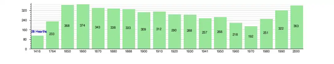 As of 2000, there were 149 private households in the municipality, and an average of 2.4 persons per household.[9] There were 47 households that consist of only one person and 8 households with five or more people. Out of a total of 154 households that answered this question, 30.5% were households made up of just one person. Of the rest of the households, there are 42 married couples without children, 48 married couples with children There were 10 single parents with a child or children. There were 2 households that were made up of unrelated people and 5 households that were made up of some sort of institution or another collective housing.[10]