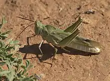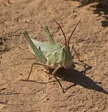 Acrolophitus hirtipes, known generally as the green fool grasshopper or plains point-head grasshopper, is a species of slant-faced grasshopper in the family Acrididae. It is found in Central America and North America.[1][2][3][4]