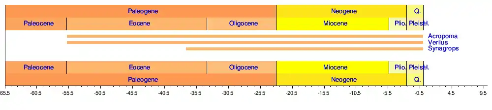 The Acriopomatidae is placed in the order Perciformes, the suborder Percoidei and the superfamily Percoidea in the 5th edition of Fishes of the World.[5] However, during the 21st Century molecular studies have indicated that avariety of mainly deep-sea fishes which were traditionally placed in the Perciformes, including the Acropomatidae, and in the Trachiniformes in fact from a newly recognised clade which has been named either the Acropomatiformes or Pempheriformes.[7] Within the Acropomatidae phylogenetic work has suggested that the genera Acropoma and Doederleinia are separate from the other genera in the traditional arrangement of the family with two other recognised lineages being placed in the separate families Malakichthyidae and Synagropidae.[8]