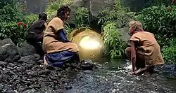 After following a boar some distance from their camp, Jacob and his brother discover other people on the island. The woman warns the brothers that the other people "are not like us. We are here for a reason." She reluctantly decides to show the brothers a mysterious tunnel filled with light and an underground stream. She tells them that one of them will eventually be its caretaker, and that she has made them incapable of harming each other. The woman explains that the light must be kept secret, and is highly coveted. She finally warns, "If the light goes out here, it goes out everywhere."