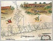 About 30 Spanish and Portuguese vessels under Admiral don Lope de Hoces arrived off Dutch Brazil in November 1635. Although the fleet failed to overrun Pernambuco, supplies and 2,500 Spanish, Portuguese, and Neapolitan reinforcements were successfully landed at the Lagunas under General Luis de Rojas.[4] The Dutch vessels in the area were driven off and de Hoces spent some months escorting a sugar convoy to the Spanish Main and preparing a counter-invasion of the Dutch-held island of Curaçao which was finally abandoned because the siege train was lost in a wreck.[5] The expedition was seen as a success in Spain, however, because the landed troops greatly contributed to the defeat of John Maurits of Nassau's attack over Bahia.[6] Another expedition was planned at Hoces'a arrival to retake the Dutch base of Pernambuco.[7]