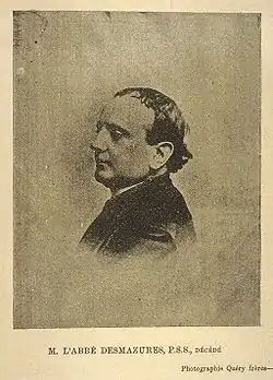 Desmazures arrived in Montreal in 1851, where he became vicar of Notre-Dame de Montréal Basilica and of Saint-Jacques, and helped organize a reading group. He was later priest of St. Sulpice.
