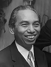 Adam Malik Batubara (22 July 1917 – 5 September 1984), or more commonly referred to simply as Adam Malik, was an Indonesian politician, diplomat, and journalist, who served as the 3rd Vice President of Indonesia from 1978 until 1983, under President Suharto. Previously, he served in a number of diplomatic and governmental positions, including Speaker of the People's Consultative Assembly from 1977 to 1978, Speaker of the People's Representative Council from 1977 to 1978, Foreign Minister of Indonesia from 1966 until 1977, and president of the United Nations General Assembly from 1971 until 1972.