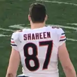 He made his professional regular season debut in the Chicago Bears' season-opening 23–17 loss to the Atlanta Falcons. On September 24, 2017, Shaheen made his first career start and caught the first pass of his career on a two-yard touchdown pass from quarterback Mike Glennon during their 23–17 overtime victory. His first career touchdown reception came in the second quarter as Shaheen was left wide open on a blown coverage by the Steelers.[25][26] Throughout the first seven regular season games, Shaheen was predominantly used as a blocking tight end in two and three tight end sets. During a Week 8 matchup against the New Orleans Saints, starting tight end Zach Miller suffered a dislocated knee and tore his popliteal artery. Miller was placed on injured reserve for the remainder of the season and Shaheen became the second starting tight end, along with Dion Sims.[27] In Week 11, he made his third consecutive start and caught a season-high four passes for 41-yards and caught a one-yard touchdown pass from Mitchell Trubisky during the Bears' 27–24 loss to the Detroit Lions.[28] On December 10, 2017, Shaheen caught four passes for a season-high 44 receiving yards and scored on a one-yard touchdown reception during Chicago's 33–7 routing of the Cincinnati Bengals.[29] Unfortunately, he injured his chest during the game and was inactive for the following week.[30]
