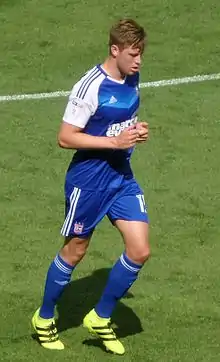 On 6 June 2016, Webster moved to EFL Championship club Ipswich Town from Portsmouth for an undisclosed fee, in a deal which also saw defender Matt Clarke go in the opposite direction.[14] He made his debut for the club on 6 August 2016, starting in a 4–2 home win over Barnsley at Portman Road.[15] He scored his first goal for Ipswich against Birmingham City on 13 December 2016.[16] Webster made 24 appearances in all competitions during the 2016–17 season, scoring once.[17]