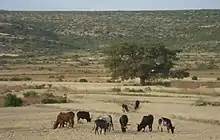 Runoff mostly happens in the form of high runoff discharge events that occur in a very short period (called flash floods). These are related to the steep topography, often little vegetation cover and intense convective rainfall. The peaks of such flash floods have often a 50 to 100 times larger discharge than the preceding baseflow.[2] The magnitude of floods in this river has however been decreased due to interventions in the catchment. At May Genet and on other steep slopes, exclosures have been established; the dense vegetation largely contributes to enhanced infiltration, less flooding and better baseflow.[3] Physical conservation structures such as stone bunds[4][5] and check dams also intercept runoff.[6][7]