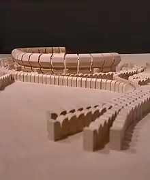 Examples of the Additive Architecture approach in Utzon's work can also be seen in his designs for the unbuilt Silkeborg Museum, the Farum Town Centre proposal, the Herning expansion plan including a "school town" and the flexible Espansiva approach for low-cost housing which only resulted in a prototype. Perhaps the best example of all is the proposal for a major sports centre in Jeddah, Saudi Arabia, based on the use of a limited number of repeating elements.[5]