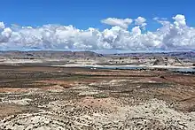 Adelolophus pertains to the Upper Member of the Wahweap Formation, which is dated to the early Campanian age.[1][3] The formation is composed of mudstone and sandstone. The environment of the Upper Member was tidal, characterized by meandering rivers. Compared to the lower members, the Upper Member had a more marine influence, caused by the encroaching Western Interior Seaway. This created an estuarine environment with brackish water. Despite the generally wet climate, a dry season would have been present.[5]