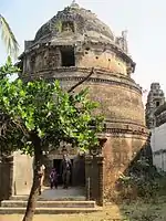 The temple has a flat rajagopuram, the gateway tower and is surrounded by tall granite walls. The temple covers an area of 2 acres (8,100 m2) and has two precincts. The presiding deity, Ranganatha Perumal, has an imposing image measuring 29 ft (8.8 m) made of mooligai silai(idol made with herbs) and is seen in reclining posture in the sanctum. The five headed snake Adisesha is sported as an umbrella for the presiding deity made of stucco. The sanctum also houses the image of Sridevi near his head and Bhudevi near his foot. The festival deity, Rangarajan along with his consorts Sridevi and Bhudevi are also housed in the sanctum. There is a mace made of silver located near the arm and the image of Garuda seen in praying posture is located near the foot of the presiding deity.[3] The images of Azhwars are housed in the hall preceding the sanctum. The central shrine is approached from the gopuram axially through a four pillared mani mandapam and pillared halls of mukha mandapam and artha mandapam. The shrine of Ranganayaki, the consort of Ranganathar is located in a shrine parallel to the sanctum. The temple has a historical grain storage container made of brick located in the south east corner of the temple.[1] The granary is one of its kind as in other temples like Srirangam, Jambukeswarar Temple at Tiruvanaikaval and Palaivananathar Temple at Papanasam. It is believed that farmers in the region store their grains in the temple, which also accommodates contributions of the donors to the temple.[4] There are shrines of Kodandarama, Hanuman and Krishna around the sanctum. The shrine of Ranganayagi has sculpted pillars made in Vijayanagara style. There is a huge foot of Vishnu is seen around the western side in the first precinct.[3] In modern times, the temple is maintained and administered by the Hindu Religious and Charitable Endowments Department of the Government of Tamil Nadu.[5]