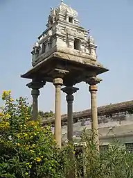 The temple is considered as Periya Perumal temple, meaning the image of presiding Ranganathar is larger than the one found at Ranganathar Temple at Srirangam.[1] The temple finds mention in the Sanskrit work Skanda Purana.[3] As per the temple records, the temple is believed to be older than the Ranganathaswamy temple at Srirangam and hence came to be known as Adhi Rangam, meaning the original Rangam.[2] Following the legend of Moon gaining his sheen, the temple tank where Chandra obtained his sheen back is called Chandrapushkarani, otherwise the Thenpennai River. The Ranga Vimanam given to Vibhishana and was installed in Srirangam temple, is believed to have been formed naturally in this temple. The Ranga vimanam in the temple is in the form of Om, is believed to be an amalgamated form of Saivism. The festive deity is taken to a hill named Maiyanoor, located 30 km (19 mi) away from the temple. It is believed that Kedilam River was formed in the hill when Garuda scratched the hill with his beak.[6]