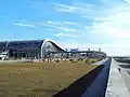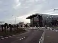 Construction of the new railway station began in November 2010 to replace the existing one, which is located to the west. It is a hall of 150 by 60 m, in two parts, one on the side of the sea, and one on the city side. There is a car park, and the roof features solar collectors, which are used for heating.[4]