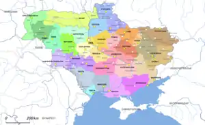 Administrative divisions of Ukraine in 1918 was inherited from the Russian Empire and was based on the system of gubernias (provinces) divided into powiats (counties) and volosts (districts). New administrative reform was adopted by the Central Council of Ukraine on March 6, 1918 which saw restructuring the subdivision of Ukraine based on a new system of regions (zemlia, plural zemli) and abolishing system of gubernias and powiats. Implementation of the new system was never fully realized and after the Skoropadsky's coup-d'etat on April 29, 1918 was abandoned.