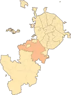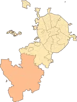 In 1977, Zheleznodorozhny and Sevastopolsky Districts were established.[2] Sevastopolsky District was split off Sovetsky and Cheryomushkinsky Districts, whereas Zheleznodorozhny District was split off Kirovsky and Timiryazevsky Districts.