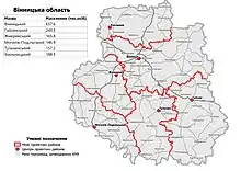 - Khmilnyk (Хмільницький район), the center is in the town of Khmilnyk;