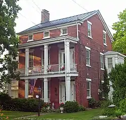 It is a two-and-a-half-story, three-bay structure of brick laid in common bond topped with a slate gabled roof and wooden cornice. Two chimneys, one on the west exterior and an interior one from the northeast, rise from it. There are star-shaped anchor bolts between the stories on the east and west elevations.[1]