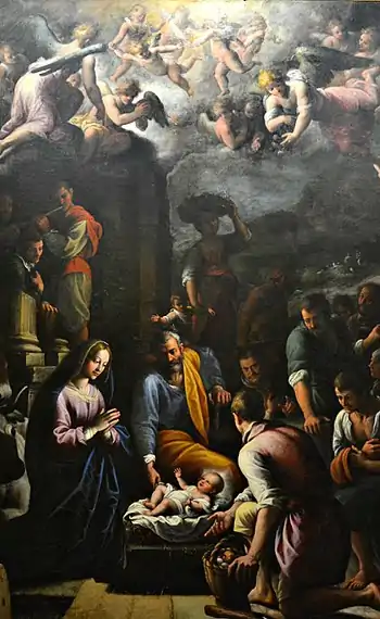 Adoration of the Shepherds or Nativity is a 1612-1614 oil on canvas painting by Fabrizio Santafede during his mature period for Maria Orsini's chapel in the Gesù e Maria church in Naples. It is now in the National Museum of Capodimonte.