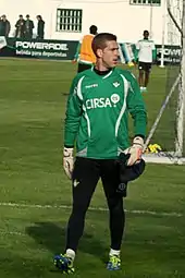 Adrián spent his first two seasons with the C-team and a further five with the reserves, with all five seasons with the reserves coming in the Segunda División B, successively backing up René and Brimah Razak.[7] He was also loaned to Alcalá in 2008 and Utrera in 2009.[8][9] He was promoted to the first team for 2011–12 as third-choice – still continuing to appear for the B's – but suffered a severe injury to his cruciate ligaments in November that kept him out of action for five-and-a-half months.[10][11]