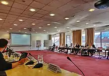 The Advisory Council on Youth comprises in total 30 young representatives designated by the Committee of Ministers for a two-year mandate,[25] including 13 young people of international non-governmental youth organisations (INGYOs) and seven representatives of National Youth Councils, on the proposal of the European Youth Forum, as well as ten members, representing non-governmental youth organisations or networks, which are not members of the European Youth Forum on the proposal of the Secretary General of the Council of Europe.[18][26] The 20 representatives on the proposal of the European Youth Forum gets democratically elected among its member organisations, usually at its spring Council of Members (COMEM) in Brussels.[27]