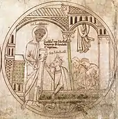 Æthelbald may have influenced the appointment of successive archbishops of Canterbury in Tatwine, Nothelm, and Cuthbert, the last probably the former bishop of Hereford;[22] and despite Boniface's strong criticisms, there is evidence of Æthelbald's positive interest in church affairs. A subsequent letter of Boniface's to Cuthbert, Archbishop of Canterbury, provided a good deal of information about Frankish synods, especially one held in 747, the decrees of which Boniface included in the letter. Boniface does not explicitly suggest to Cuthbert that he, too, should hold a synod, but it seems clear that this was Boniface's intent.[37] A council was, in fact, subsequently held at Clovesho (the location of which is now lost); Æthelbald attended and perhaps presided. The council was concerned with the relationship between the church and the secular world, and it condemned many excesses on the part of the clergy.[38] The council limited relations between monks and laymen and ruled that secular activities were impermissible for monks: secular business and secular songs were both forbidden, especially "ludicrous songs".