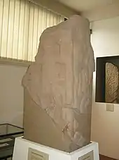 A fragment of a cross shaft from Repton includes on one face a carved image of a mounted man which, it has been suggested, may be a memorial to Æthelbald. The figure is of a man wearing mail armour and brandishing a sword and shield, with a diadem bound around his head. If this is Æthelbald, it would make it the earliest large-scale pictorial representation of an English monarch.[45][46]