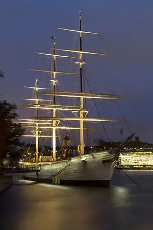 In 1947 the Stockholm City Museum saved the ship from being broken up, and since 1949 af Chapman has been managed by the Svenska Turistföreningen (STF, Swedish Tourist Association). It serves as a youth hostel with 285 beds. During 2008 the ship underwent a comprehensive restoration.[4][5] While the ship was being worked on in a drydock, the adjacent youth hostel Skeppsholmen remained open. Usually, the af Chapman and Skeppsholmen – not to be confused with the islet of the same name, on which both are situated – are run as a single hostel, with the af Chapman offering accommodation and Skeppsholmen housing the reception, a kitchen for guests, and other facilities. The ship is docked on the shore next to the Admiralty House.