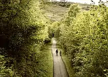 As the A4107 meanders through the steep sided valley it is easy to understand why this valley has been developed as a premier Mountain Bike riding venue in the United Kingdom. The Forest Park also has nine waymarked walking trails, ranging from a 30-minute amble to a 3-4 hour ramble. There are also miles of public rights of way to make up your own walks. As well as mountain biking, there is also a network of 25 miles (40 km) of disused railway lines which can be used for walking and cycling. These are called the Family Routes, or the Low Level Cycleway. These also form a link between the mountain bike trails.