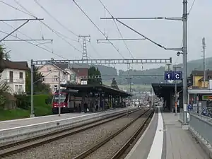 Affoltern am Albis is a railway station in the Swiss canton of Zürich, situated in the municipality of Affoltern am Albis. The station is located on the Zürich to Zug via Affoltern am Albis railway line and is an intermediate stop on Zürich S-Bahn line S5, as well as being the terminus of line S14.[1][2][3]