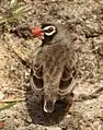 The African quailfinch, spectacled quailfinch, or white-chinned quailfinch (Ortygospiza atricollis fuscocrissa), is a common species of estrildid finch found in eastern and southern Africa. Some taxonomists consider it to be conspecific with the black-faced quailfinch, others consider all three species to be conspecific.
