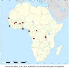 The Afripedia Project was launched in mid-June 2012 and is ongoing. It aims to expand offline Wikipedia access in French-speaking Africa, and encourage Africans to contribute to Wikipedia.[1] The project installs local Kiwix-serve wireless and intranet servers and provides training and maintenance support.[2]