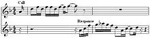 Call-and-response invocations refer to a vocal technique where one phrase is sung by a member of the group and then it is answered by another member, who sings a complimentary phrase.[17] This technique was brought to the Caribbean by slaves that came from Western and Central Africa.[18] Call-and-response invocations are used throughout the afro-Caribbean music genre, and particularly in the music derived from Cuba.[3]