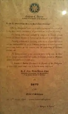 ![]() Order of Sikatuna Citation |