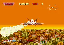 After Burner II is an arcade combat flight simulator game released by Sega in 1987.[3] It is the second game in the After Burner series, and was released for the Sega X Board arcade system. In the game, players fly an F-14 Tomcat jet fighter, gunning down enemies while avoiding incoming fire. After Burner II came both a standard arcade cabinet and a servo actuated, sit-down motion simulator version which moved according to the motion of the plane onscreen. The cockpit would bank in the same direction the on-screen aircraft was banking. It is an updated version of After Burner, with the addition of throttle controls. It was a commercial success, becoming Japan's highest-grossing arcade game of 1988.