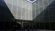 Commissioned by the Aga Khan, the museum building and the spaces around were designed to be seen as a celebration and mysteries of light. The rectilinear building is oriented forty-five degrees to solar north where all its sides are exposed to the sun. The form has been chiseled to create a concaved angular profile that is also a natural expression of the two level building. Clad in sandblasted white Brazilian granite, the surfaces of the building are set in motion in a constant interplay with the sun in light and deep shadows. The effect is similar to a sundial.[22]