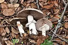 Agaricus albolutescens is a moderate-sized, stocky-statured mushroom with a pleasant odor; it bruises slowly but persistently yellow.[1] This character distinguishes it from other Agaricus species, such as Agaricus xanthodermus, a mildly toxic species which has a phenolic or medicinal odor, and bruises fleetingly yellow. Fieldmarks of Agaricus albolutescens include a tendency to discolor tawny-brown, rather than merely yellow, and chocolate-brown free gills.[2][3] Agaricus silvicola is very similar but has a less dramatic bruising reaction, more yellowish than tawny, a normal rather than stocky stature, and slightly smaller spores. A. albolutescens and A. silvicola represent a single polymorphic species or a species complex.[4][5]