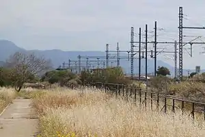 ![]() View of the station in the background, taken from the archaeological site of Agioi Theodoroi (April 2016) | ||||||||||||||||