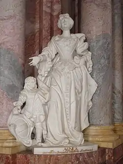 Under the rule of the Abbot Benedict II Seidel (1735–1747) was built in the Fürstenkapelle a sculpture of white marble from Agnes, which is still there.[4]