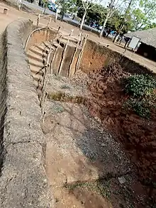 The underground town of Agongointo-Zoungoudo is located approximately 9 km from Abomey, in central Benin. The city was discovered in 1998 by the Danish company DANIDA. It consists of a series of bunkers and other housing structures around 10m deep underground, built in an apparent effort to provide dwelling as well as protection for warriors.[1]
