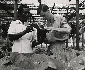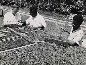 Under British colonial rule, Ghanaian farmers seized the opportunity to efficiently grow and export cocoa for the large British market, given that they had a safe food supply.[7] The labor force needed for the labor-intensive production of cocoa in Ghana's fertile south was mainly constituted of migrant workers from the savannah of northern Ghana.[8] This development was facilitated by the traditional Ghanaian system of communal purchase of land, which gave individual farmers the security of planting a cocoa tree that would take several years until being ready to harvest. Among other factors, this enabled Ghana to grow from zero in 1891 to the world's largest cocoa exporter in the world by 1911.[9]