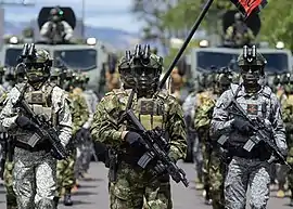 The Urban Counter-Terrorism Special Forces Group - Alpha, otherwise known as AFEUR or AFEAU (Spanish: Agrupación de Fuerzas Especiales Antiterroristas Urbanas) is the army detachment of the elite AFEAU special operations group within the Colombian Armed Forces,[1] dedicated to performing counter-terrorism operations, HVT acquisition or elimination, and hostage rescue.