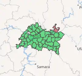 Agryzsky District (Russian: Агрызский райо́н; Tatar: Cyrillic Әгерҗе районы, Latin Ägerce rayonı) is a territorial administrative unit and municipality of the Republic of Tatarstan within the Russian Federation. The district is located in the northeast of the republic on the bank of the Izh River and occupies an area of 1796.6 square kilometers (about 693.6 sq mi). According to the 2010 census, the municipality had a population of 36,848. The main city of Agryz accounts for 52.7% of the district's total population and is located 304 km east of Kazan and 36 km from Izhevsk.[4]
