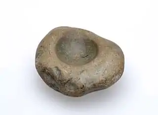 One of the collective sites contained the remains of 23 adults (men and women) and children.[25] It has been theorised that these people fell victim to epidemics, of which in the remains no traces were found.[26] The burial sites showed evidence of ritual and beliefs in afterlife; the bodies were surrounded by stone tools, such as scrapers and mortars, and some pieces were decorated with red or black colours. Food offerings, such as the meat of the white-tailed deer, guinea pigs and Tayassu pecari accompanied the buried.[27] An isolated body was adorned with colourful painted pieces of rock.[28] Similar to what has been found in Tequendama, some of the buried people may have been characterised by rituals of cannibalism.[29] This is evidenced further by the discovery of mutilated and coloured skeletal remains in Aguazuque.[30]