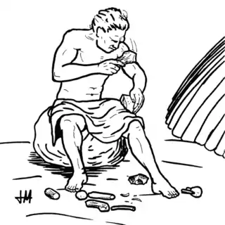 The stone artefacts uncovered are very similar in character to those found at El Abra and Tequendama and consist of tools mainly made of chert from the Guadalupe Group. The tools comprise various kinds of scrapers, knives, perforating tools, burins, spokeshaves, maceheads and round mortars and flat milling stones. Most of the artefacts originate from the nearby chert, with some tools made from shales of the Villeta Group and more allochthonous basalt tools, coming from farther west, around the Magdalena River, provenance of the Central Ranges of the Colombian Andes.[16] Apart from tools, Aguazuque is characterised by a large percentage of flakes resulting from the lithic reduction; the process of elaboration of the tools; in total 3868 samples, between 60 and 70% of the lithic fragments found were of this type.[17]