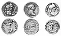 Roman coins were also found in the deposit: a gold aureus of Roman emperor Domitian (81–96 CE), a gold coin of the Roman emperor Trajan (98-117 CE) and a gold aureus of Sabina, wife of Hadrian (117-138 CE).[3] In the coin of Sabina, she is entitled "Agusta", a title she received in 117 CE, at the time Hadrian was proclaimed Emperor. Therefore, the final dedication of the Ahin Posh stupa necessarily occurred after this date, probably during the few decades after 120 CE.[4]