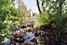 The park sits on "one of the nation's largest systems of underwater springs."[2] They produce some 1.2 billion US gallons (4.5×109 l) of fresh water per day into the aboveground waterways.[2] Water in the springs originate as snowmelt from the Medicine Lake Volcano highlands.[4][5][6]