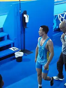 ![]() Aidos Sultangali at the 2021 World Wrestling Championships in Oslo, Norway | |