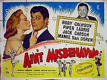 Ain't Misbehavin' is a 1955 musical film released by Universal-International and starring Rory Calhoun, Piper Laurie, Jack Carson and Mamie Van Doren. A young, rich-dreaming club girl falls in love with and marries the rich man of her dreams. As she begins to try to change herself to fit in with the ladies of rich society, her husband feels she is misbehaving with another man. In the end, they divorce and Sarah goes to a remote lodge. Kenneth meets her there and another argument ensues. Sarah then overhears Kenneth talking to Piermont about his love for Sarah just the way she is, and she leaves for the club, leaving instructions for the lodge master to tell Kenneth where she is. At the club, they get back together and fall in love all over again.