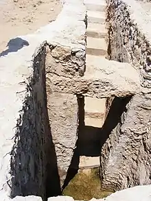 The site has been excavated by the Danish and Japanese expeditions in 1954 and 1990s respectively. [2] The Japanese team originated from Rikkyo University and discovered Wells 2 and 3 in addition to Well 1, and were the first to suggest the wells were holy places. [3]