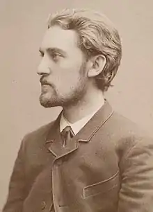 To commemorate the semicentennial of the Kalevala's first publication, the Finnish Literature Society—under the leadership of its chairman, the Finnish senator G. Z. Yrjö-Koskinen—organized a festival on 28 February 1885.[6] The highlight was the premiere of a new Kalevala-themed composition by Finland's then-leading composer: Robert Kajanus's Aino, a symphonic poem (Swedish: symfonisk dikt; Finnish: sinfooninen runoelma) for male chorus and orchestra. Kajanus conducted the Helsinki Orchestral Society (which he had founded in 1882)[7] and an unnamed (likely amateur) choir at the Ceremonial Hall of the Imperial Alexander's University of Finland.[6][8] For Helsingfors Dagblad, the music critic Karl Wasenius (pen name 'Bis') wrote a favorable—if largely descriptive—review, complimenting the piece as "captivating and beautiful... gripping and elevated all the way to the final chord".[9][lower-alpha 2] At the concert, Kajanus also conducted Kullervo's Funeral March (Kullervon surumarssi), his 1880 setting of Kullervo's demise in Runo XXXVI, as well as his Finnish Rhapsody in D minor (1881).[6]