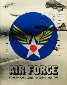 Air Force is a complex multi-player wargame that allows players to simulate air combat over Europe during World War II. Thirty airplanes from the Luftwaffe, RAF and USAAF are included. Each airplane has a corresponding card with numerical data that tracks maneuverability, speed, armaments, ammunition, damage, altitude and attitude.